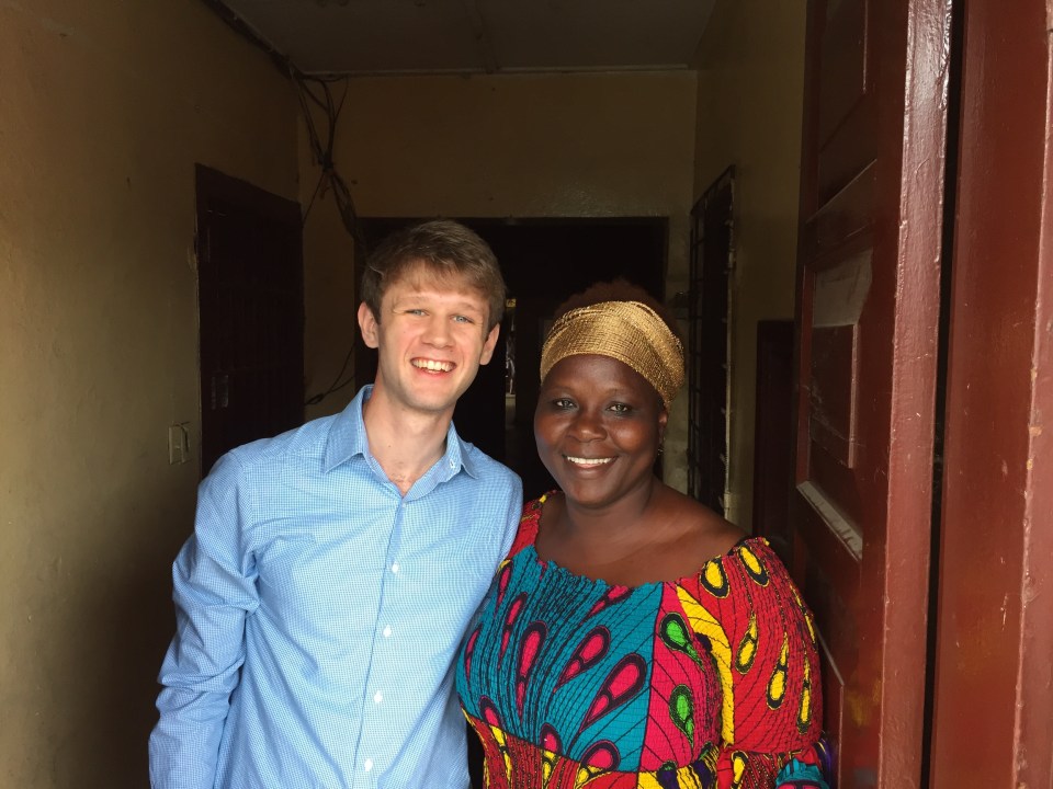 Henry Young (W&M ’20) with Kou Johnson, program coordinator of Center for Action Research & Training, in Monrovia, Liberia after research meeting in June 2018.